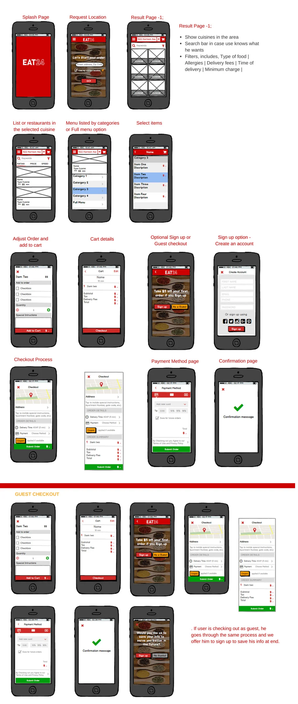 My next project involved the redesign of Eat24, a food delivery service powered by Yelp. I love food and that certainly helped : )